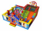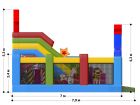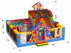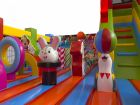 Помимо функциональной части - аттракцион продуман технически: безопасные ступеньки и плавные спуски горки, достаточная зона торможения после спуска и стена останова. Высокие стены батута снабжены сеткой для внешнего контроля за поведением детей.