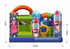 Надувной батут «Космос» — практичный аттракцион в космической тематике, на котором спроектирована маленькая горка (1,45 м) для детишек младшего возраста. Малыши без труда заберутся в игровой центр самостоятельно благодаря удобной входной подушке, после чего, непосед ожидает космический мир, где корабли покоряют вселенную, а дети-космонавты высаживаются на неизведанную планету, встречая на своем пути загадочных существ. Налюбовавшись рисунками внеземного мира, ребят ждут прыжковые развлечения, мягкие столбцы препятствия и фигура-кольцо. Преодолев препятствия или нырнув через арку, ребенок окажется возле подъема на горку.