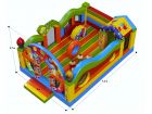 Надувной батут Краски — увлекательный аттракцион для детей помладше, на котором спроектирована небольшая, но просторная прыжковая площадка, а на ней расположены фигура кольцо, надувные карандаши и домик.