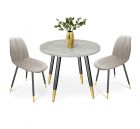 Столешница из МДФ смотрится аккуратно и привлекательно, поскольку имеет плавный закругленный переход от лицевой поверхности к боковым кромкам. имеет рельефные и структурные формы, которые визуально неотличимы от натурального дерева. Оригинальную нотку придает золотое напыление в нижней части опоры. Четкое разделение черного и золотого прекрасно гармонируют со столешницами Sheffilton и каркасом стула в аналогичном стиле SHT-S85-1 черный муар/золото.