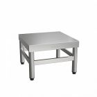 Конструкция подтоварника разборная. Материал столешницы – нержавеющая сталь AISI430 толщиной 0,8 мм. Края столешницы имеют подгиб для предотвращения травматизма персонала. Стойки каркаса выполнены из нержавеющей трубы Ø40 мм стали AISI 201 с приваренными уголками для крепления столешницы (в верхней части) и усиливающих перемычек (в нижней части). В стойки запрессованы регулируемые по высоте пластиковые ножки, позволяющие изменять высоту подставки в пределах 20 мм, пластиковое основание, не повреждает половое покрытие при эксплуатации подставки.