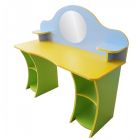 Красочный уголок для сюжетно-ролевых игр, поможет детям развить творческие навыки, разнообразить фантазию, воспитать стремление к опрятности и чистоте, закрепить знания о профессии парикмахера. Уголок имеет зеркало закругленные полочки для расчесок, щеток, бутылочек.