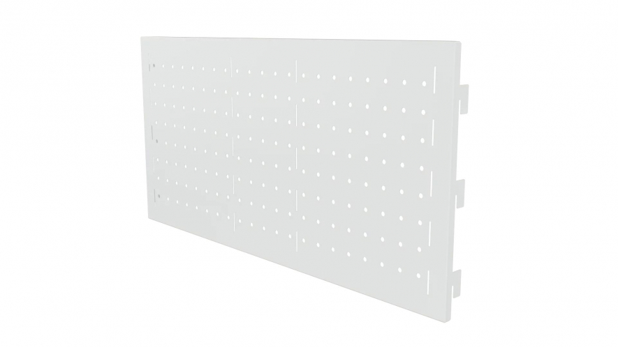 Размеры (ВхШхГ): Перфорированная панель 160х596х10 мм Перфорированная панель 288х596х10 мм Перфорированная панель 160х896х10 мм Перфорированная панель 288х896х10 мм Максимальная равномерно распределенная нагрузка до 15 кг Цвет: белый (RAL 9016) Перфорированная панель предназначена для хранения различных предметов гардероба, приспособлений и инструмента. Неотъемлемый атрибут в гардеробной системе для ценителей порядка. Может быть укомплектована элементами для гаража и гардеробной комнаты для хранения мелочей. Используя любой свободный участок между полками и корзинами в гардеробной системе, при помощи перфорированной панели, можно превратить место хранения.