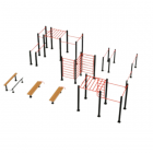 Площадка для воркаута в спорт-комплекс представляет собой комплект сборно-разборных конструкций, состоящий из турников, стенок шведских, скамеек, пресс-блоков, брусьев, площадок двор и парк. Сварные швы изделий данного комплекта тщательно обработаны и зачищены. Поверхность изделий покрыта порошковой краской. В комплекте с площадкой имеются все детали для сборки (комплект под бетонирование). Изделие может быть исполнено под установку в зале или на покрытии без использования бетонирования.