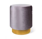 Нежный пуф цилиндрической формы в нижней части окантован золотым металлическим кольцом более узкого диаметра. Надежность металла и мягкость ткани прекрасно сочетаются в готовом исполнении пуфа.