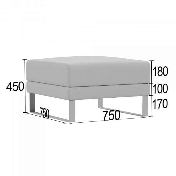 КаркасКаркас выполнен из калиброванного бруса 30х40 мм из массива хвойных пород древесины с влажностью 8-12%. Для усиления конструкции используются фанера толщиной 10 мм и 15 мм, ДСП 16 мм, влагостойкий ДВП 3,2 мм и прессованный картон 1,75 мм. Соединения осуществляются с помощью каркасных пневмопистолетов и каркасной скобы 50 мм с клеем, что обеспечивает высокую прочность и надежность.ЧехолЧехол изготавливается по точным лекалам из высокопрочных материалов. Пошив выполняется на колонковых одно- и двухигольных швейных машинках с тройным продвижением, что гарантирует ровность швов. Компенсирующая лапка со встроенным направителем середины шва обеспечивает стабильную натяжку ниток и равномерное расстояние между строчками.СиденьеСиденье оснащено пружинными блоками и наполнителем из пенополиуретана толщиной 10 мм, 20 мм, 30 мм и 80 мм (подушка). Используется пенополиуретан ST2536 плотностью 25 кг/м? и жесткостью 3,6 кПа. Обивка дна выполнена из технической ткани спанбонд плотностью 100 г/м?.СпинкаСпинка имеет наполнитель из пенополиуретана толщиной 10 мм и 30 мм, также плотностью 25 кг/м? и жесткостью 3,6 кПа.ОпорыОпоры черного цвета выполнены из металлической полосы. Высота опор составляет 170 мм. Регулировка высоты отсутствует. Тип крепления — накладная площадка, монтаж не требуется.УпаковкаУпаковка включает спанбонд 17, пленекс, двухслойный картон и полиэтиленовую пленку. Используется одноразовый фирменный скотч для предотвращения несанкционированной переупаковки.Допустимая нагрузкаМаксимальная нагрузка на одно посадочное место составляет до 120 кг.