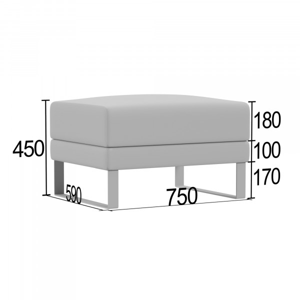 КаркасКаркас выполнен из калиброванного бруса 30х40 мм из массива хвойных пород древесины с влажностью 8-12%. Для усиления конструкции используются фанера толщиной 10 мм и 15 мм, ДСП 16 мм, влагостойкий ДВП 3,2 мм и прессованный картон 1,75 мм. Соединения осуществляются с помощью каркасных пневмопистолетов и каркасной скобы 50 мм с клеем, что обеспечивает высокую прочность и надежность.ЧехолЧехол изготавливается по точным лекалам из высокопрочных материалов. Пошив выполняется на колонковых одно- и двухигольных швейных машинках с тройным продвижением, что гарантирует ровность швов. Компенсирующая лапка со встроенным направителем середины шва обеспечивает стабильную натяжку ниток и равномерное расстояние между строчками.СиденьеСиденье оснащено пружинными блоками и наполнителем из пенополиуретана толщиной 10 мм, 20 мм, 30 мм и 80 мм (подушка). Используется пенополиуретан ST2536 плотностью 25 кг/м? и жесткостью 3,6 кПа. Обивка дна выполнена из технической ткани спанбонд плотностью 100 г/м?.СпинкаСпинка имеет наполнитель из пенополиуретана толщиной 10 мм и 30 мм, также плотностью 25 кг/м? и жесткостью 3,6 кПа.ОпорыОпоры черного цвета выполнены из металлической полосы. Высота опор составляет 170 мм. Регулировка высоты отсутствует. Тип крепления — накладная площадка, монтаж не требуется.УпаковкаУпаковка включает спанбонд 17, пленекс, двухслойный картон и полиэтиленовую пленку. Используется одноразовый фирменный скотч для предотвращения несанкционированной переупаковки.Допустимая нагрузкаМаксимальная нагрузка на одно посадочное место составляет до 120 кг.