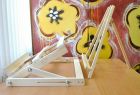 При проектировании данного мольберта мы много времени уделили узлу соединения корпуса и задней ножки. Для этих целей мы используем металлические уголки, закрепленные на два самореза каждый. Сама же ножка насажена на металлический болт и зафиксирована гайкой-барашком. Ради чего это все: