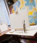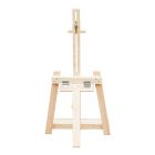 Одной из особенностей большинства настольных мольбертов является неподвижная нижняя полка. Т.е. уровень, на котором будет расположена ваша работа, зависит от высоты стола, на котором стоит мольберт. Если столешница находится в 75 см от пола, то нижний край картины разместится на уровне 80 см от пола.