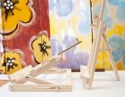 Выполнен мольберт из соснового бруса. Пошлифован, но ничем не покрыт.