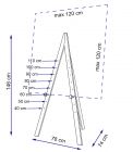 Полная высота мольберта 146 см. Глубина – это то, на сколько ножки уходят назад – 74 см. В ширину на полу Вацлав занимает 78 см.