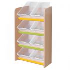 Система состоит из нескольких контейнеров ПВХ прозрачного цвета размером 395х295х140мм или 395х295х200мм, которые размещаются на наклонных полках и обеспечивают удобный доступ к содержимому. Надежная конструкция легко собирается и разбирается для хранения или переноски. Если вы ищете функциональный и прочный стеллаж для детского сада, выберите стеллажную систему хранения в онлайн-магазине MegaCityShop.