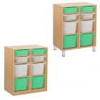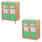 Контейнеры ПВХ, поставляемые с системой, имеют размеры 295х395х140мм или 295х395х200мм, что позволяет использовать их для хранения различных игрушек, книг и других вещей, необходимых для обучения и развития детей. Эта система также идеально подходит для домашнего использования, обеспечивая надежное и удобное хранение вещей.