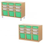 Контейнеры ПВХ, поставляемые с системой, имеют размеры 295х395х140мм или 295х395х200мм, что позволяет использовать их для хранения различных игрушек, книг и других вещей, необходимых для обучения и развития детей. Эта система также идеально подходит для домашнего использования, обеспечивая надежное и удобное хранение вещей.
