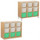 Контейнеры ПВХ, поставляемые с системой, имеют размеры 295х395х140мм или 295х395х200мм, что позволяет использовать их для хранения различных игрушек, книг и других вещей, необходимых для обучения и развития детей. Эта система также идеально подходит для домашнего использования, обеспечивая надежное и удобное хранение вещей.