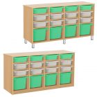 Контейнеры ПВХ, поставляемые с системой, имеют размеры 295х395х140мм или 295х395х200мм, что позволяет использовать их для хранения различных игрушек, книг и других вещей, необходимых для обучения и развития детей. Эта система также идеально подходит для домашнего использования, обеспечивая надежное и удобное хранение вещей.