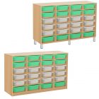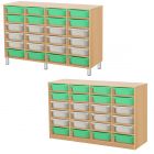 Контейнеры ПВХ, поставляемые с системой, имеют размеры 295х395х140мм или 295х395х200мм, что позволяет использовать их для хранения различных игрушек, книг и других вещей, необходимых для обучения и развития детей. Эта система также идеально подходит для домашнего использования, обеспечивая надежное и удобное хранение вещей.