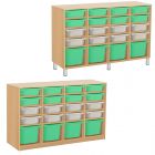 Контейнеры ПВХ, поставляемые с системой, имеют размеры 295х395х140мм или 295х395х200мм, что позволяет использовать их для хранения различных игрушек, книг и других вещей, необходимых для обучения и развития детей. Эта система также идеально подходит для домашнего использования, обеспечивая надежное и удобное хранение вещей.