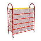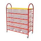 Каркас изготовлен из металлической трубы диаметром 22мм и 15х15мм, а экологичная полимерная краска делает его долговечным и устойчивым к повреждениям. Установленные на стеллаже усиленные поворотные колеса с тормозом обеспечивают его легкое перемещение и фиксацию на месте.