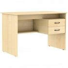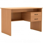 Стол изготовлен из ЛДСП 16мм, торцы столешницы отделаны противоударной кромкой ПВХ 1 мм. Для дополнительной жесткости конструкции под столешницей предусмотрена царга. Стол комплектуется полкой и подвесной тумбой с двумя ящиками на роликовых направляющих.