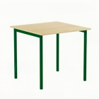 Столешница изготовлена из ДСП с пластиковым покрытием. Торцы столешницы отделаны противоударной кромкой ПВХ 1 мм. Ножки изготовлены из трубы круглого сечения. Металлокаркас окрашен износостойкой порошковой краской.