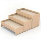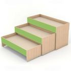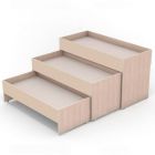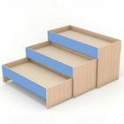 Кровать представляет собой 3 х ярусную конструкцию с выдвижным 1- ым и 2- ым ярусами и неподвижным 3-им ярусом. Выполнена из ЛДСП 16 мм, кромка ПВХ 2 мм, ложе - метоллокаркас (цельносварная рама) с настилом. Каждый ярус кровати рассчитан на использование ватного матраца 1400х600 мм. Габариты в сложенном положении (ШхГхВ) 1490×640×860 мм, в разложенном — 1490×1840×390/630/860 мм.