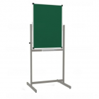 Две рабочие поверхности для написания мелом. Рабочие поверхности — стальной лист. Обрамление — стальной профиль, покрытый полимерной порошковой эмалью, углы закрыты пластиковыми заглушками. Каркас установлен на регулируемые опоры, укомплектован лотком для мела.