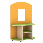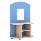 Изготовлен из цветного ЛДСП 16 мм, окантованного кромкой ПВХ толщиной 2 мм. Состоит из основания, представляющего из себя тумбу с полками, и надстройки с установленным по её центру игровым зеркалом из пленки "Аракал" (цвет "серебро").