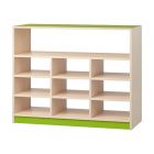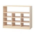 Изготовлен из ЛДСП толщиной 16 мм, все торцы окантованы кромкой ПВХ 0,4 мм. Задняя стенка облагороженное ДВП 4 мм. Разделена на 9 ячеек и имеет большую полку. Полка может крепиться к стене.