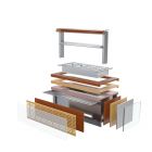 - Может быть оснащён направляющими, которые соединяются друг с другом в единую ровную поверхность с помощью специальных элементов, что обеспечивает беспрепятственное и лёгкое скольжение подносов