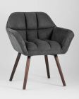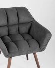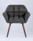 Оригинальное мягкое дизайнерское кресло с удобными подлокотниками. Ножки выполнены из массива бука. В качестве обивки используется износостойкая прочная замша, которая не истирается и не линяет со временем. Кресло отличает толстая спинка и сиденье, украшенные красивой строчкой, которая добавляет креслу интересной фактуры. Каркас металлический, выдерживает нагрузку до 150 кг. Высота подлокотников от пола составляет 62 см.