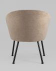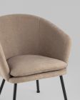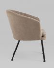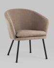 Широкая спинка плавно переходит в удобные подлокотники высотой 69,5 см от пола. Для дополнительного комфорта в кресле есть мягкое плотное сиденье. В качестве обивки используется ткань шенилл, плотный износостойкий материал с бархатистой структурой, приятный на ощупь. Металлический каркас добавляет устойчивости и выдерживает нагрузку до 120 кг. Ножки металлические черные.
