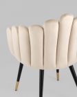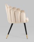 Яркое многоцветное кресло с обивкой из прочного велюра. Надежная опора достигается благодаря металлическому каркасу и удобным устойчивым ножкам с золотым декором. Спинка с оригинальным дизайном украшена широкими полосами в виде веера.