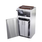 - Комплектуется выкатной мусорной емкостью на 4-х колесах, с рамкой, надежно фиксирующей мусорный пакет