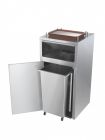 - Комплектуется выкатной мусорной емкостью на 4-х колесах, с рамкой, надежно фиксирующей мусорный пакет