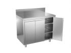 - Наличие полок позволяет увеличить полезное пространство в столе размещая на них посуду, инвентарь, столовые приборы и сухие виды продуктов