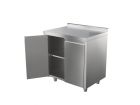 - Двери, боковые панели и столешница выполнены из нержавеющей стали AISI430, углы столешницы заварены и зашлифованы, что обеспечивает гигиеническую безопасность и облегчает санитарную обработку