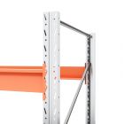 Дополнительная приставная секция паллетного фронтального стеллажа. Стеллажи данного типа используются для размещения паллетированных грузов. Удобны для хранения широкого ассортимента продукции, обеспечивают удобный и быстрый доступ к каждому поддону. Высота первого яруса позволяет использовать пол как нулевой ярус для размещения паллет с грузом; При установке подпятника ширина дополнительной секции увеличивается на 125 мм; Стойки перфорированы по всей высоте, что дает возможность менять расстояние между ярусами; Профили стоек имеют большое количество гибов, которые придают жесткость конструкции и повышают устойчивость при ударах грузом или техникой; Z-образная балка прокрашивается со всех сторон и полностью защищена от коррозии, а цельнокатанный профиль без дополнительных точечных сварных швов подвергается меньшему напряжению; Балки крепятся к стойкам посредством самоподклинивающегося зацепа, который придает максимальную жесткость всем соединениям и конструкции в целом; Возможность наращивания рам по высоте путем присоединения стоек друг к другу с помощью специального соединителя.
