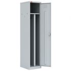 Шкаф разборный металлический для хранения одежды. Односекционный, однодверный с двумя отделениями, разделенными стальной перегородкой.