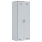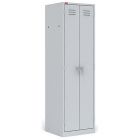 Шкаф металлический разборный двухсекционный, повышенной жесткости для хранения сменной одежды. В каждом отделении: полка для головного убора, перекладина для вешалки и два крючка для одежды, индивидуальный врезной замок.