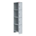 Промежуточная секция модульного ряда с четырьмя отделениями. Каждое отделение снабжено дверью с индивидуальным врезным замком. Шкаф предназначен для хранения сумок, пакетов в супермаркетах