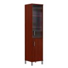 Каркас выполнен из ЛДСП толщиной 25мм., кромка ПВХ т. 2мм. Задняя стенка из ХДФ т.3,2мм. Внутренние полки из ЛДСП 18мм., кромка ПВХ т.0,8 мм. Верхняя и нижняя панель из ЛДСП т 25мм., кромка ПВХ т. 2 с фасадной стороны, кромка ПВХ т. 0,8 с трех сторон. Дверь вкладная, из ЛДСП т. 18мм., кромка ПВХ т. 0,8мм. Ручка скоба, цвет алюминий. Стекло -тонированное, бронза. Ручка скоба, цвет алюминий. Двери вкладные.