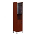 Каркас выполнен из ЛДСП толщиной 25мм., кромка ПВХ т. 2мм. Задняя стенка из ХДФ т.3,2мм. Внутренние полки из ЛДСП 18мм., кромка ПВХ т.0,8 мм. Верхняя и нижняя панель из ЛДСП т 25мм., кромка ПВХ т. 2 с фасадной стороны, кромка ПВХ т. 0,8 с трех сторон. Дверь вкладная, из ЛДСП т. 18мм., кромка ПВХ т. 0,8мм. Ручка скоба, цвет алюминий. Стеклянная дверь в алюминиевой рамке, стекло - сатинат бронза. Ручка скоба, цвет алюминий. Двери вкладные. Фурнитура в комплекте.