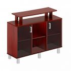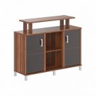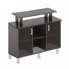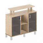 Каркас выполнен из ЛДСП толщиной 25мм., кромка ПВХ т. 2мм. Задняя стенка из ХДФ т.3,2мм разрезная в паз. Внутренние полки из ЛДСП 18мм., кромка ПВХ т.0,8 мм. Стекло -тонированное, бронза. Ручка скоба, цвет алюминий. Двери вкладные.
