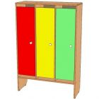 Шкаф для одежды 3-х секционный обязательный атрибут для детских садов. Он является незаменимым и будет выполнять свое предназначение в любую пору года, ведь зимой в них хранится зимняя одежда, а в другие сезоны – пересменка, одежда для спортивных занятий. Поэтому, так важно, чтобы такое личное место выделялось каждому ребенку, который ходит в детский сад. Выбор также представлен моделями с однотонной расцветкой под дерево, а также разноцветным фасадом, который украсит раздевалку и сделает ее ярче. Оборудован полками для головных уборов, крючками и полками для обуви.