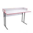 Металлические опоры 25х25 мм, окрашены в серый цвет. ЛДСП 16мм пепельного цвета с разноцветной кромкой. Возможно изготовление со столешницей с пластиковым покрытием.