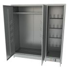 Сушильный шкаф Guard 8.1 предусматривает сушку 8-и комплектов сырой одежды и обуви. Данная модель отлично подойдет для сушки белья. Конструктивно состоит из двух независимых отделений, одно из которых предназначено для сушки одежды или белья и оснащено перекладиной для вешал и полкой для головных уборов. Второе отделение используется для сушки обуви развешиваемой на штанги, через которые подается теплый воздух.В комплекте идет фланец для подключения к вентиляции.Технические характеристики сушильного шкафа Guard 8.1: