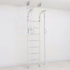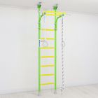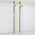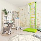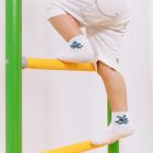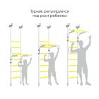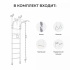 В R5 Kometa регулируемый по высоте турник, который крепится на надежные современные хомуты. Его можно зафиксировать на нужную детям высоту. Ребенок растет - можно переставить турник повыше. Предусмотрены специальные массажные ступени для лестниц, они исключают скольжение ног и рук и развивают мелкую моторику. В комплектацию входит самое популярное среди детей навесное оборудование: кольца, трапеция, канат.