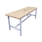 Скамейка для раздевалки представляет собой сборную конструкцию, состоящую из 3-х планок сидения (многослойная фанера толщиной 24 мм) и цельносварного каркаса из стального профиля 25х25. Поверхность планок сидения покрыта трехкомпонентным лаком в два слоя. Планки скамейки устойчивы к истиранию, царапинам и влажности. Сварные швы каркаса данного изделия тщательно зачищены. Поверхность каркаса покрыта порошковой краской. Крепление планок осуществляется к каркасу скамейки при помощи мебельных болтов. Во все внешние отверстия каркаса скамейки установлены пластиковые заглушки.