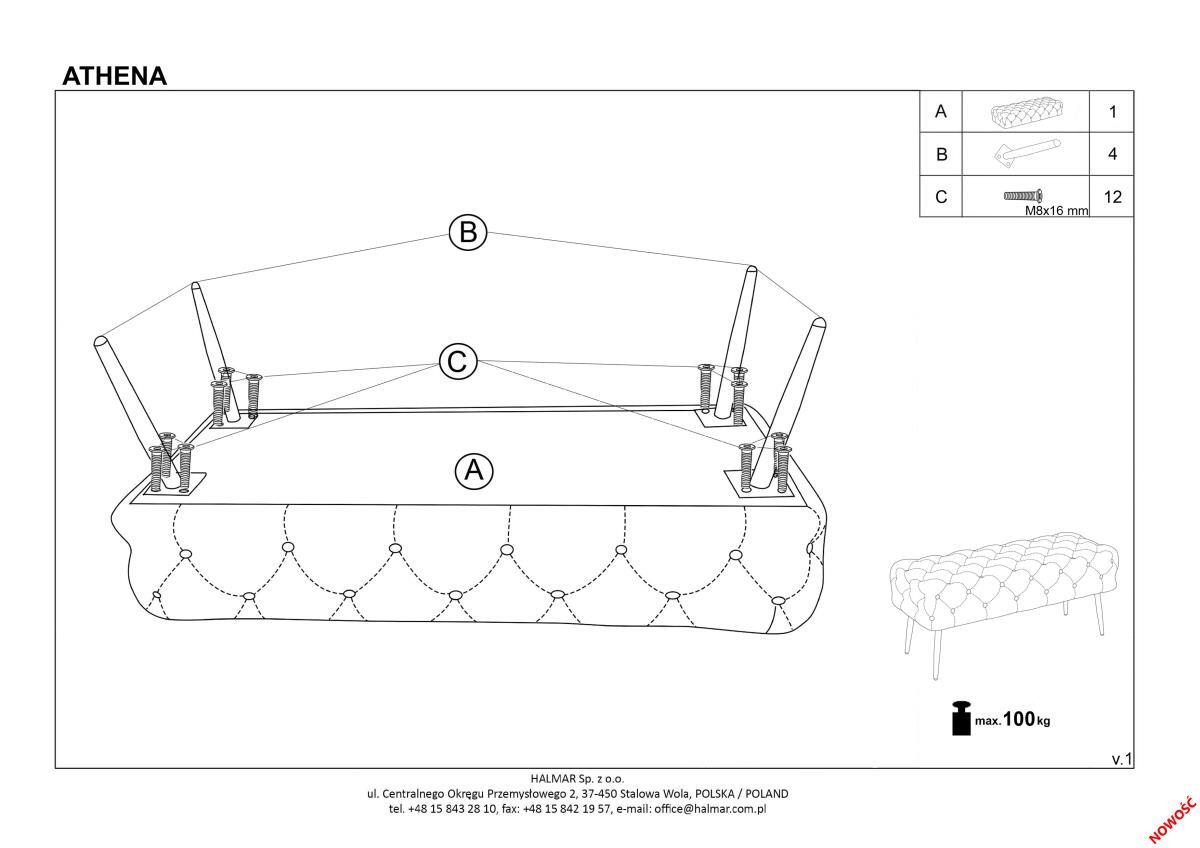 Вес, кг: 9,7 / Высота (см): 45 / Гарантия, мес.: 12 / Глубина (см): 45 / Количество коробок: 1 / Материал каркаса: металл / Материал сидения: вельвет / Необходимость сборки: да / Размер упаковки 1: 1,10/0,23/0,41 / Страна производитель: Китай / Цвет: розовый/золотой / Ширина (см): 100